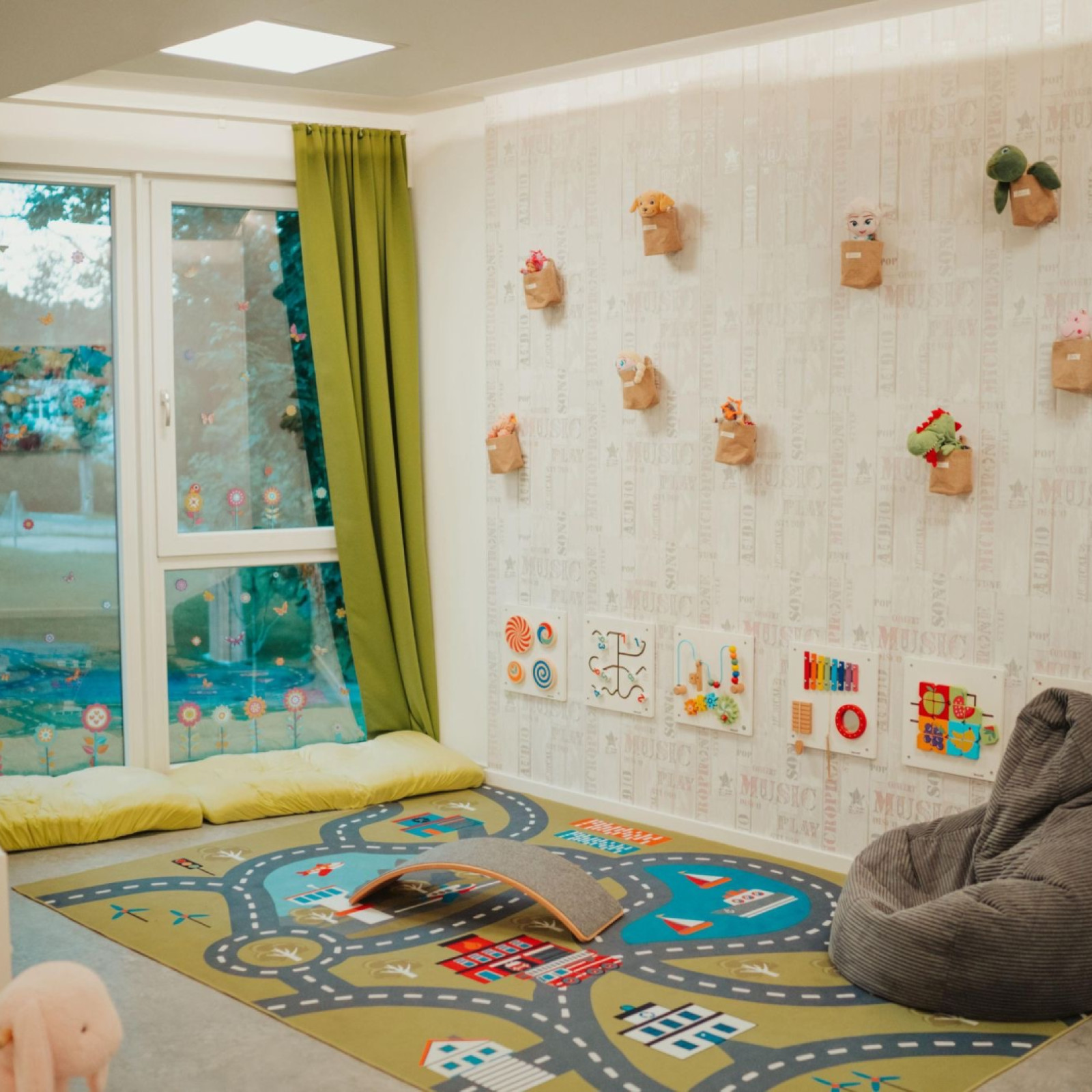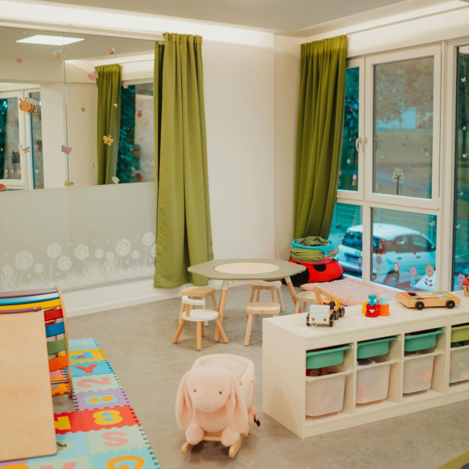 Die Räume meiner Kindertagespflege bieten den Kindern viel Platz zum Toben, Spielen und Schlafen. Es steht ein liebevoll eingerichteter Raum mit einer Fläche von insgesamt über 30 Quadratmetern für vielfältige Entdeckungen bereit und zwei mal die Woche haben wir die Möglichkeit ein Tanzsaal ins Turnsaal zu verwandeln. Die Einrichtung ist modern und mit der kindgerechten Ausstattung fühlen wir uns hier jeden Tag wohl. Sicherheit ist beim Spielen wichtig und so sind die Räume mit verschiedenen Features ausgestattet, die unbekümmertes Spielen ermöglichen.